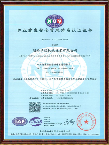 職業(yè)健康安全管理體系認(rèn)證證書(shū)