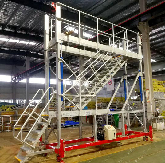 湖南華鋁機(jī)械技術(shù)有限公司設(shè)計(jì)生產(chǎn)的移動(dòng)升降工作平臺(tái),梯子和平臺(tái)同步上升或下降,方便操作人員頻繁上下,可以在行程范圍內(nèi)任意高度停留,保證了高處作業(yè)便利性、特殊性要求,升降機(jī)構(gòu)可選手動(dòng)、電動(dòng)、氣動(dòng)或液壓控制,可以在地面或平臺(tái)上實(shí)現(xiàn)升降操作。適用于高鐵、地鐵、輕軌、公共汽車等軌道交通車輛的裝配和維修,包括車頭、車側(cè)、車頂?shù)雀鱾€(gè)位置,組合成完整的工作平臺(tái)系統(tǒng),為車輛裝配檢修提供便利、高效、安全的基礎(chǔ)條件。